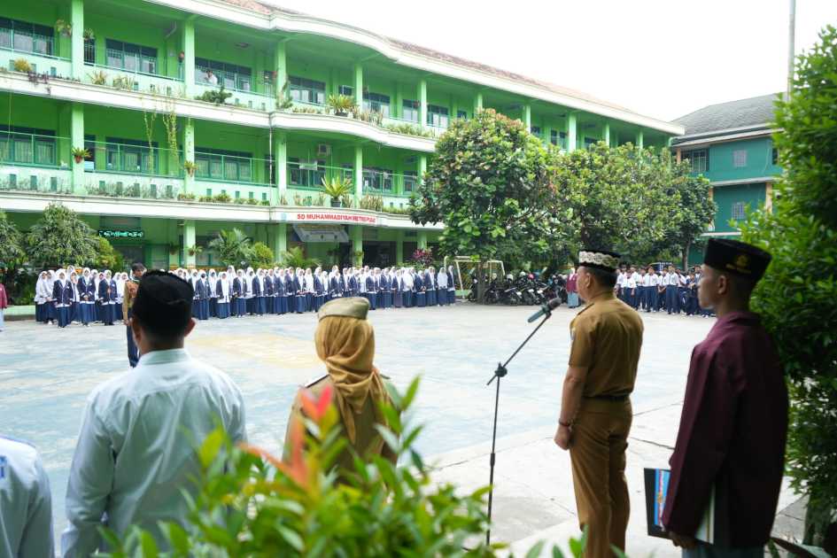 KOTA METRO - Wali Kota Metro, Bambang Iman Santoso, menjadi pembina upacara bendera sekaligus menyerahkan penghargaan kepada para pemenang Muhammadiyah School Competition (MUSCO) III yang berlangsung di Halaman Komplek Pendidikan Muhammadiyah, Jl. Diponegoro, Kota Metro, Senin (27/10/2025).